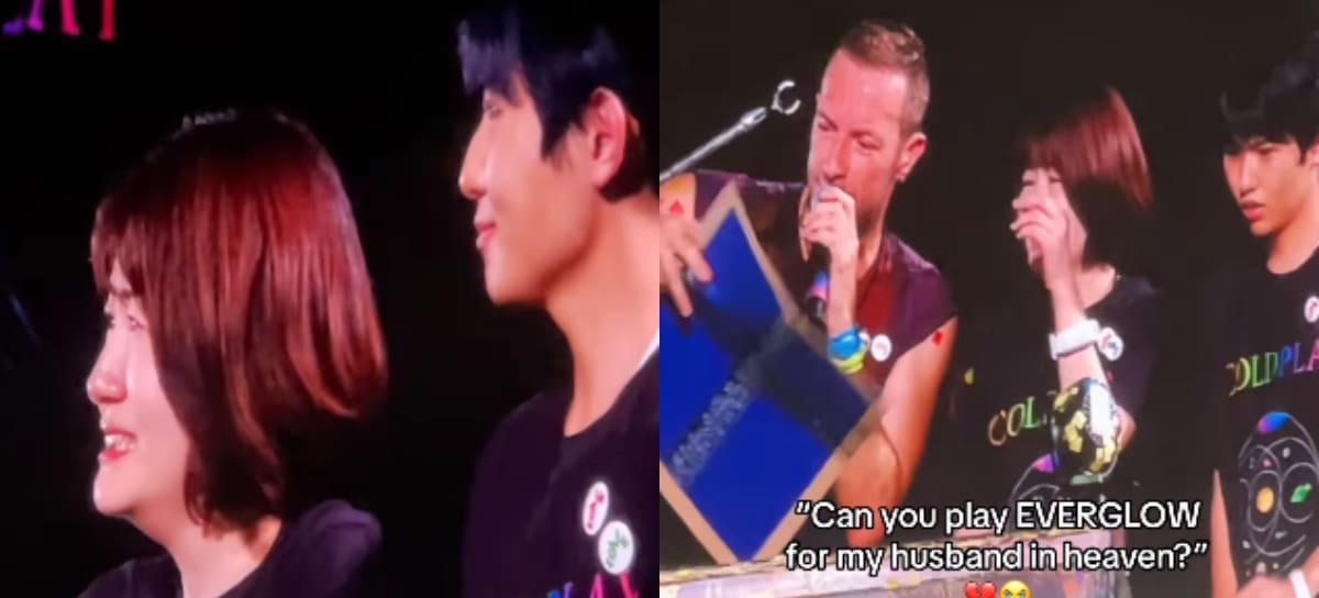 En el video que se compartió en redes sociales, se puede ver que Chris Martin subió a dos personas al escenario. Se trataba de una mujer y un joven, ellos tenían un cartel que decía: “Can you play 'Everglow' for my husband in heaven?”.