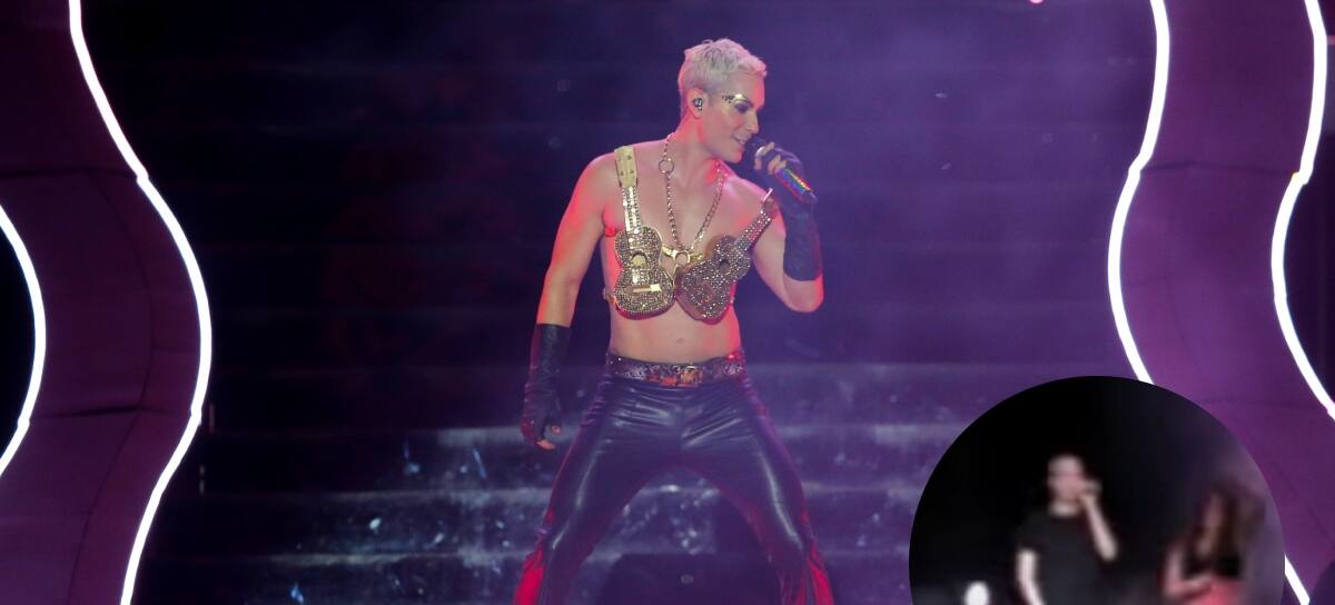 En los videos que circular en redes sociales, se puede ver que Christian estaba cantando ‘Dame’ frente a frente Dulce María y justo en ese momento se cae hacía adelante y cae sobre su rostro.