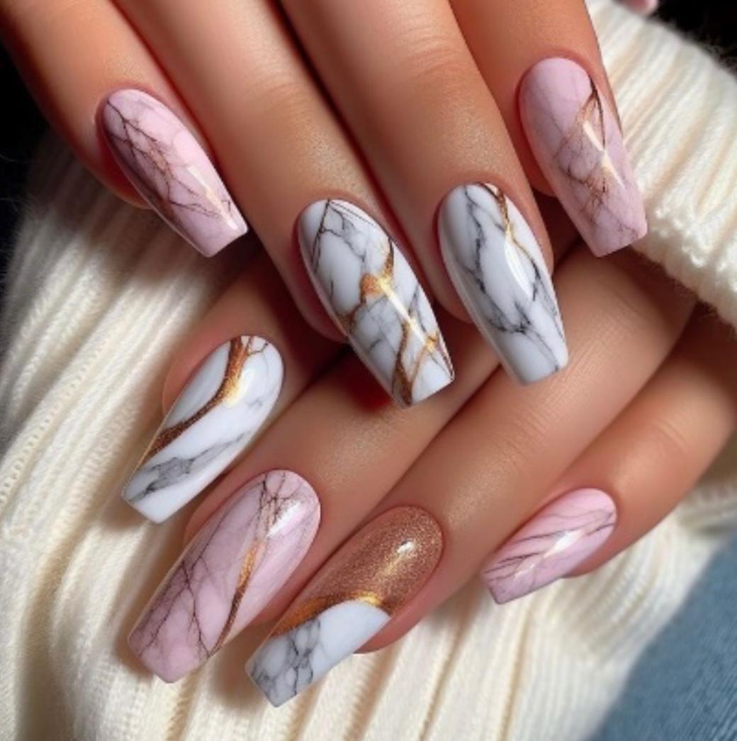 Arte de mármol en agua: diseños únicos en cada uña, ideales para chicas creativas que quieren un look personalizado.