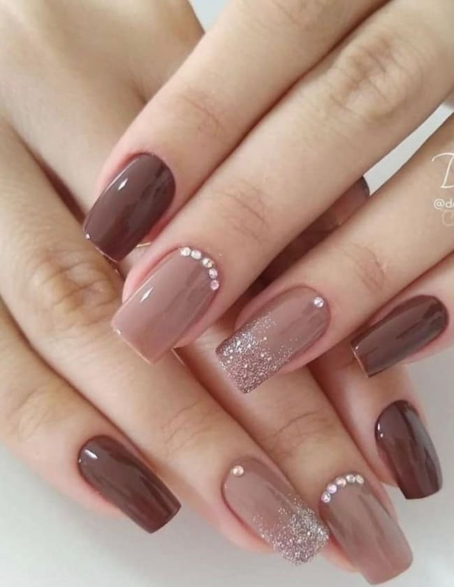 6. Uñas burdeos con brillo