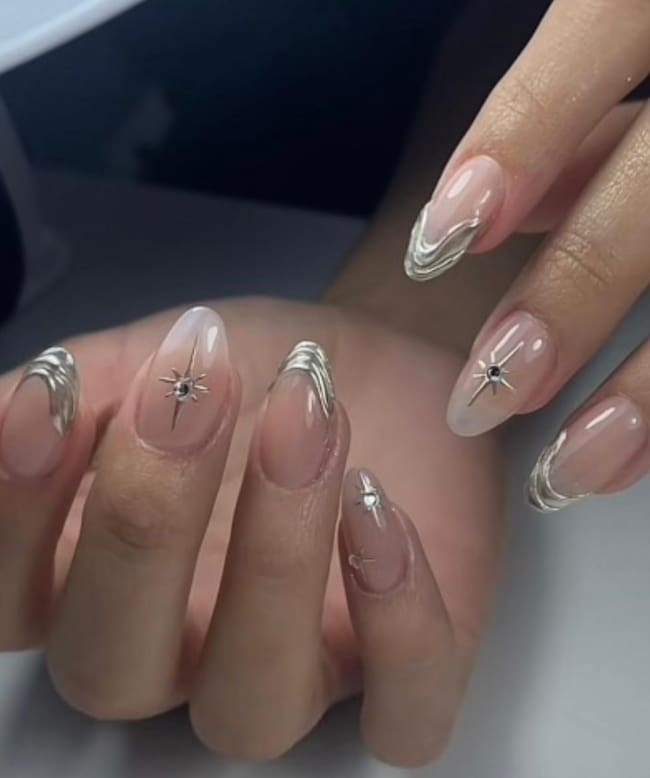 10. Uñas plateadas y con brillos
