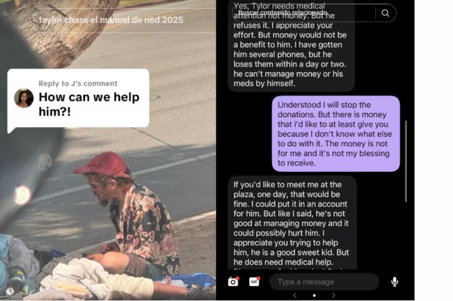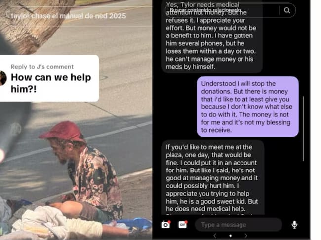 "Tylor necesita atención médica, no dinero. Agradezco tu esfuerzo, pero ese dinero no le beneficiaría. Le he comprado varios teléfonos, pero los pierde en uno o dos días. No puede administrar el dinero ni sus medicamentos por sí mismo (...) Si quieres reunirte conmigo en la plaza algún día, estaría bien. Podría depositarlo en una cuenta para él, pero, como te dije, no es bueno administrando el dinero y podría perjudicarlo. Agradezco que intentes ayudarlo; es un niño bueno y dulce, pero necesita ayuda médica”, se lee en el chat que sostuvieron.
