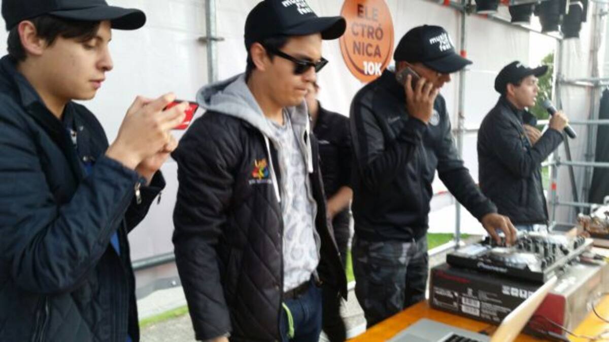 El dj está poniendo a vibrar a todos los que llegan a la meta de la carrera.