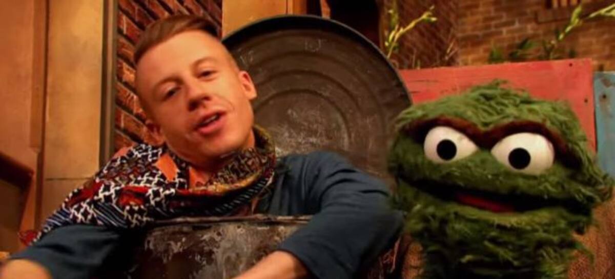 El rapero apareció en una reciente emisión de Plaza Sésamo para presentar una nueva versión para niños de su tema “Thrift Shop”.
