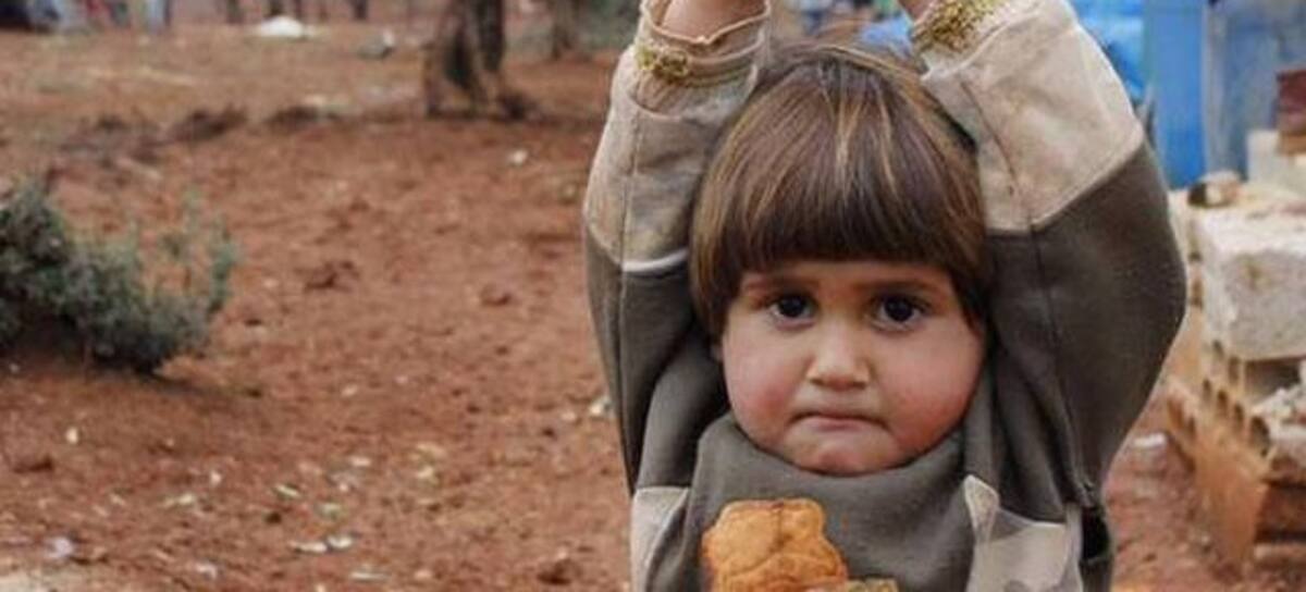 La imagen de esta pequeña siria levantando los brazos con rostro angustiado se ha vuelto viral en las redes sociales.
