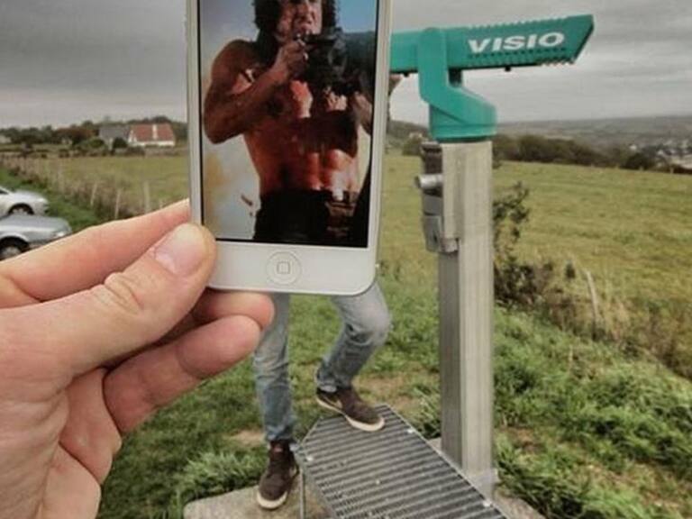 El fotógrafo francés François Dourlen guarda imagenes de sus películas favoritas en su celular para luego buscar un fondo perfecto y recrear las mejores escenas del cine.