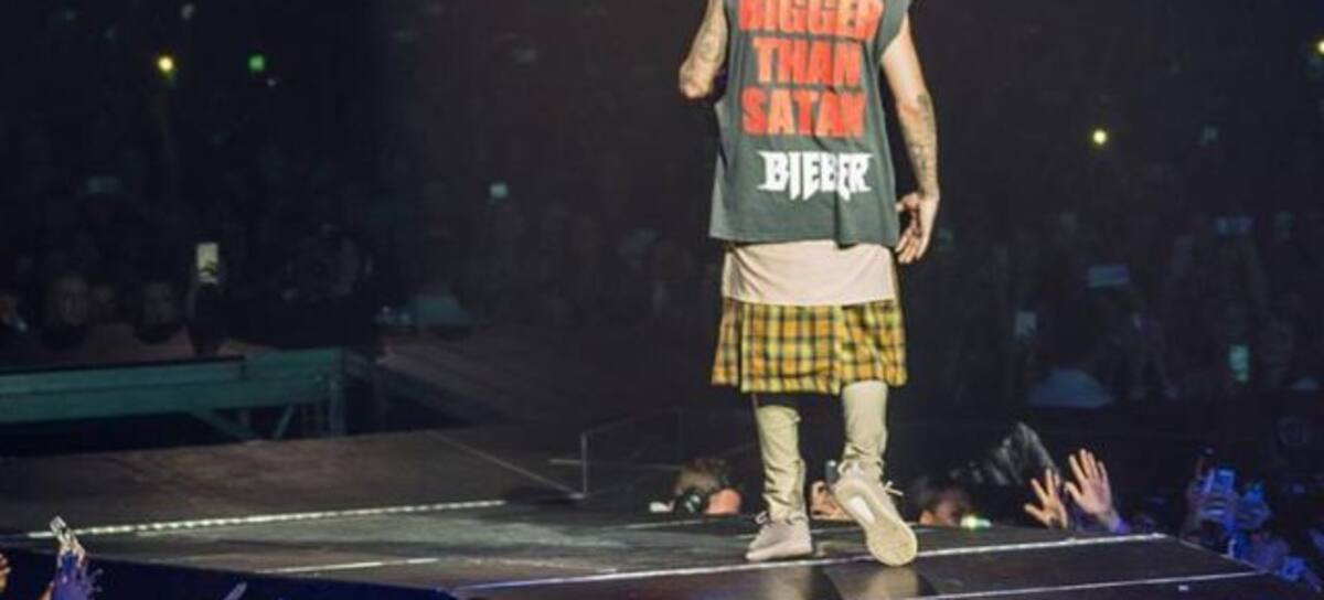 El cantante llevaba puesta una camiseta que en la parte de adelante tenía una imagen del también cantante Marilyn Manson y por detrás una frase particular: "Más grande que Satanás, Bieber".