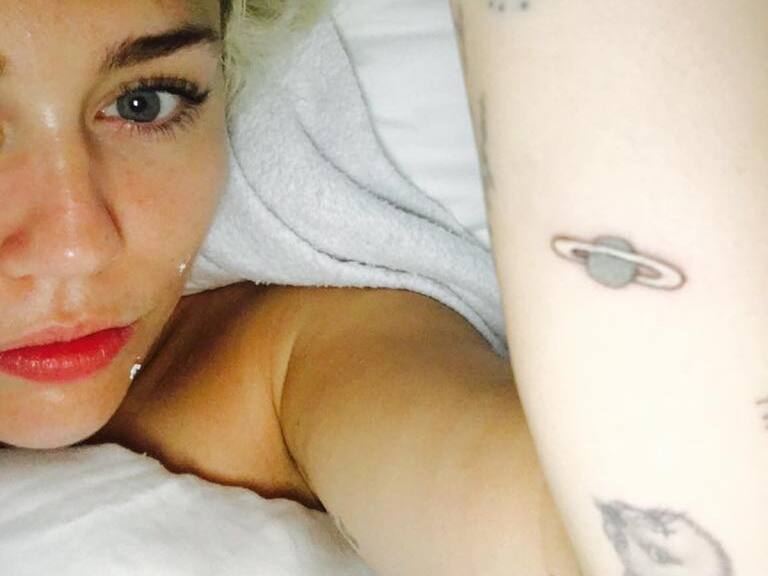 Miley Cyrus compartió en Instagram una foto para que sus seguidores vieran su nuevo tatuaje pero la cantante no se dio cuenta que se habia equivocado pues confundió Júpiter con Saturno.