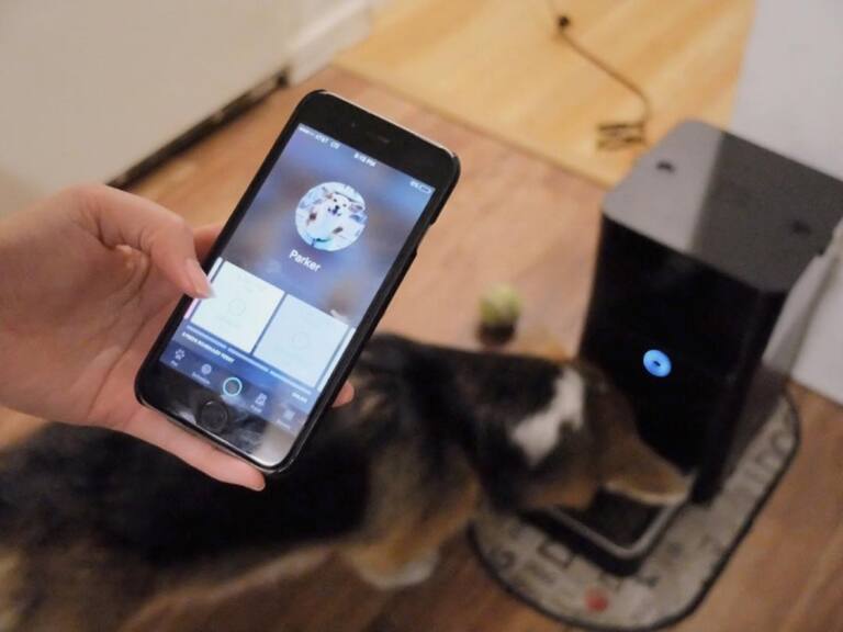 "Puedes utilizar la aplicación para personalizar la distribución de la comida como mejor le convenga a tu perro o gato, de forma que ni siquiera tengas que preocuparte de pulsar el botón para que la comida caiga al plato. Además el plato de acero inoxidable que incorpora tiene una capacidad de cinco tazas para evitar que la comida acabe desparramándose por el suelo".