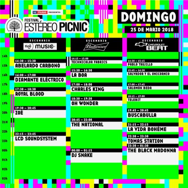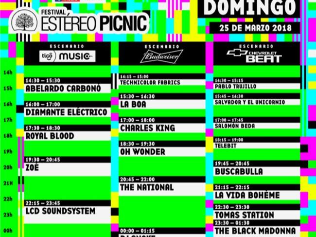 Estos son los horarios del Festival Estéreo Picnic 2018