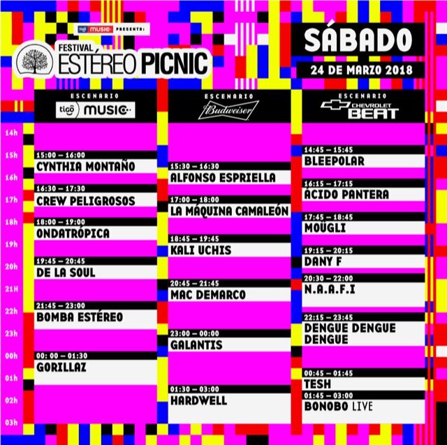 Entre los artistas más esperados el día sábado encontramos a Gorillaz, Galantis y Hardwell estos son los horarios de las presentaciones el día sábado en el Estéreo Picnic: