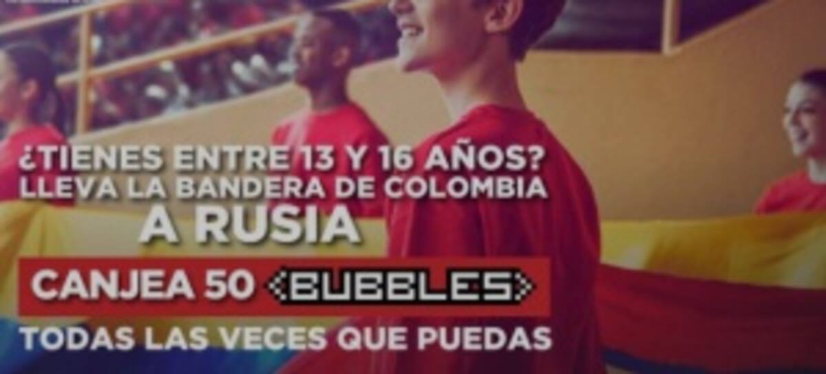 ¡Coca-Cola te invita a llevar con orgullo la bandera de la Selección! Si tienes entre 13 y 16 años, canjea BUBBLES para llevar la bandera de Colombia en su partido contra Senegal en la Copa Mundial de la FIFA Rusia 2018™.