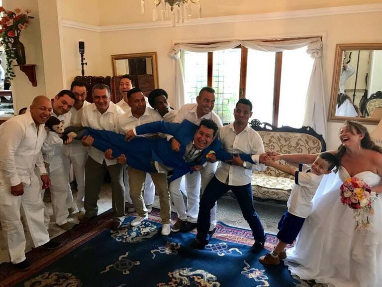 El importante acontecimiento dio mucho de qué hablar, en especial por las graciosísimas fotos en las que, entre otras cosas, se le puede ver siendo "arrastrado" al altar literalmente, a algunos amigos tratando de "salvarlo" del matrimonio, y se puede apreciar en sus zapatos un mensaje de salvación (S.O.S) ante tan importante acontecimiento.
