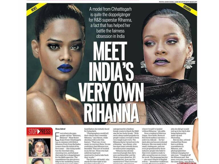 Renee Kujur es una modelo india que sorprende en redes por su parecido con Rihanna, y de la que las marcas se han enamorando luego del boom viral que ha sufrido, ya que previo al mismo, la joven no conseguía concretar muchos contratos por el color oscuro de su piel.