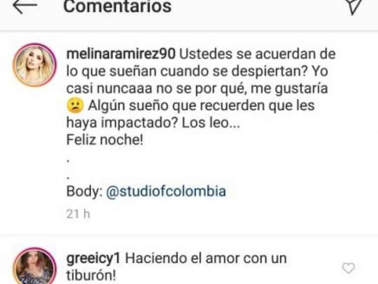 La confesión de Greeicy fue vista por miles de personas en el perfil de la modelo y presentadora Melina Ramírez, donde con una foto bastante sensual, Melina le preguntó a sus seguidores si ellos recordaban los sueños cuando despertaban, pero lo que se llevó la mirada de todos fue la respuesta de Rendón.