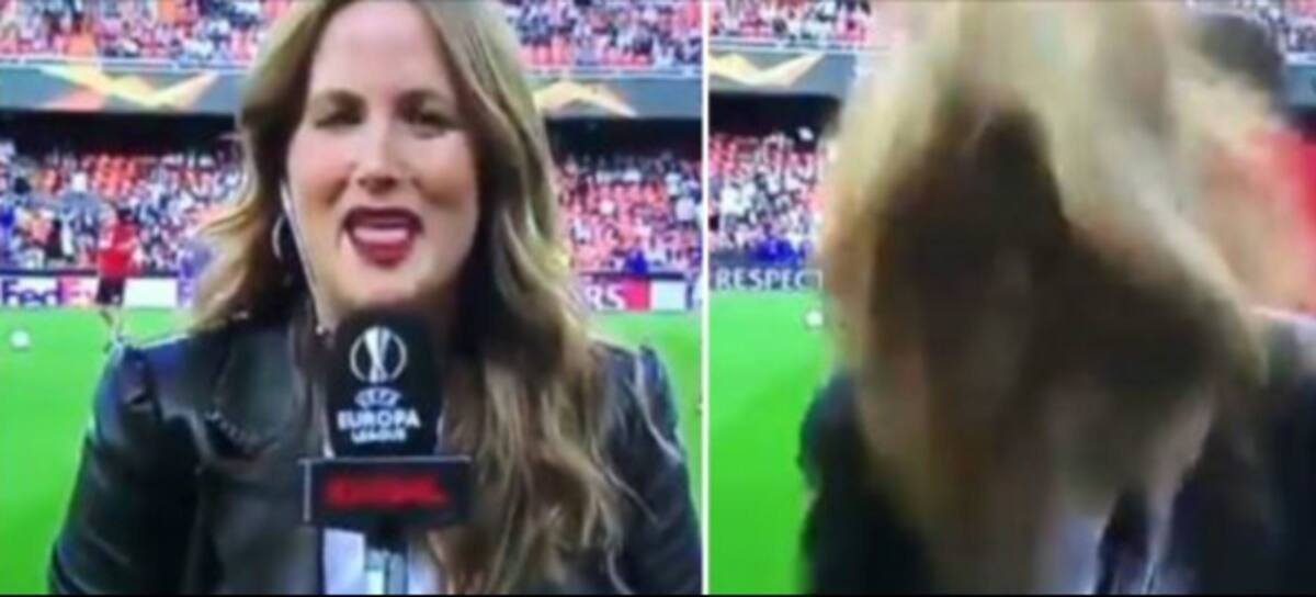 Una reportera recibió el peor golpe de su vida durante la transmisión de La Liga Europea entre Valencia y el Arsenal. La periodista Mónica Benavent del medio GOL estaba dando información de cancha cuando un balón llegó justo a su cabeza y la tiró de un golpe.