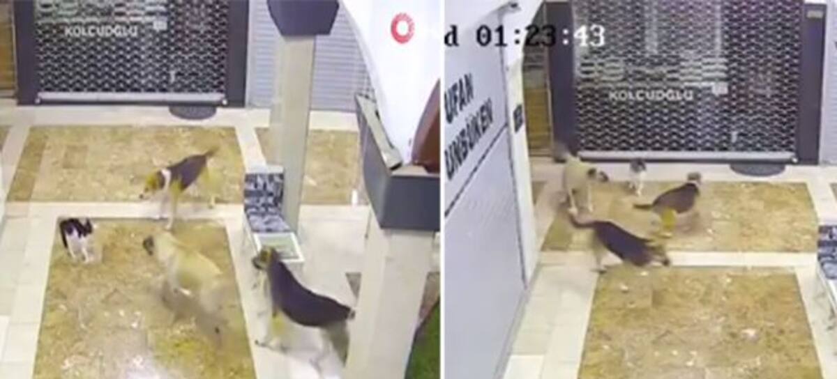 Se volvió viral en las redes sociales un video grabado en Adana, Turquía, en el que se ve a una valiente mamá felina defender a una de sus crías de tres perros.