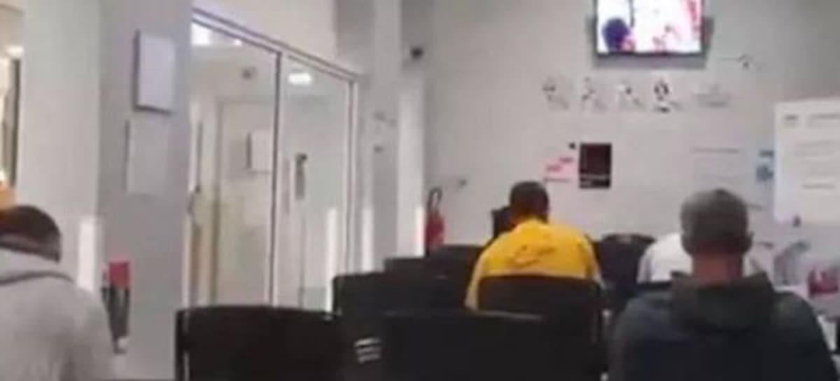 En las imágenes, se ve a los pacientes sentados mientras la película se emite en una de las pantallas de la sala de espera.