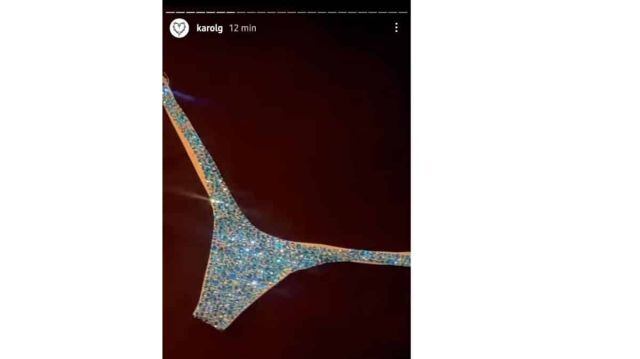 Karol G, que decidió perforarse los senos, compartió que se compró una mini tanga azul y brillante, que sin duda usará muy pronto.