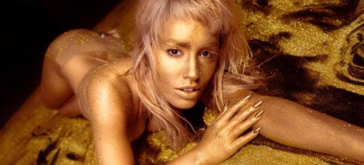 La cámara la rodea, mientras un grupo de personas la observan a lo lejos y su cuerpo se va cubriendo progresivamente de dorado, hasta convertirse en una estatua de oro.