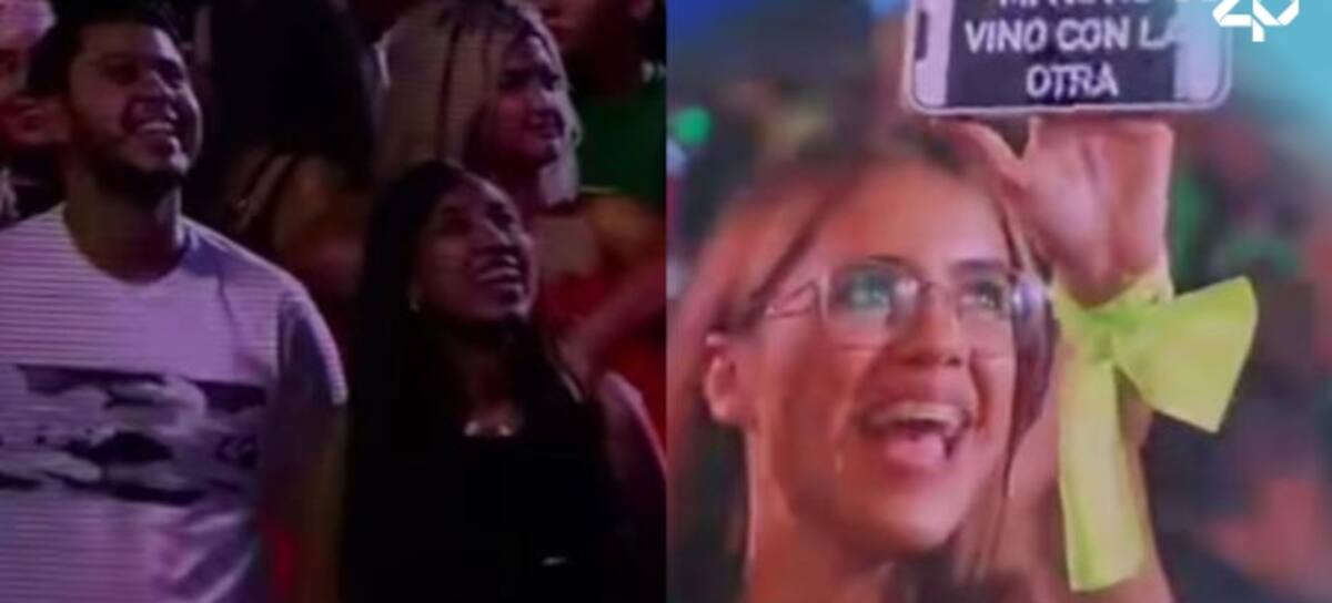 La mujer que estaba vestida con una camiseta blanca y una pañoleta verde en su mano en honor al cantante, generó curiosidad por la frase que estaba mostrando en su dispositivo móvil que decía: "Mi novio vino con la otra".
