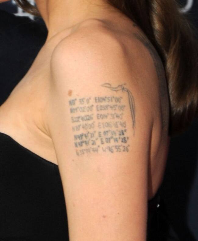 Uno de los tatuajes que más ha llamado la atención son siete líneas con coordenadas que tiene en su brazo izquierdo. Según se ha conocido, las primeras seis coordenadas serían el lugar donde nacieron cada uno de sus seis hijos, entre ellos Zahara, de quien se conoció su historia de adopción.
