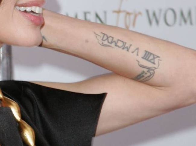 Algunos otros tatuajes que Jolie tiene incluyen, la palabra ‘determinación’ escrita en árabe. Cerca de la muñeca luce una runa, con la letra H como un homenaje a su hermano James Haven.