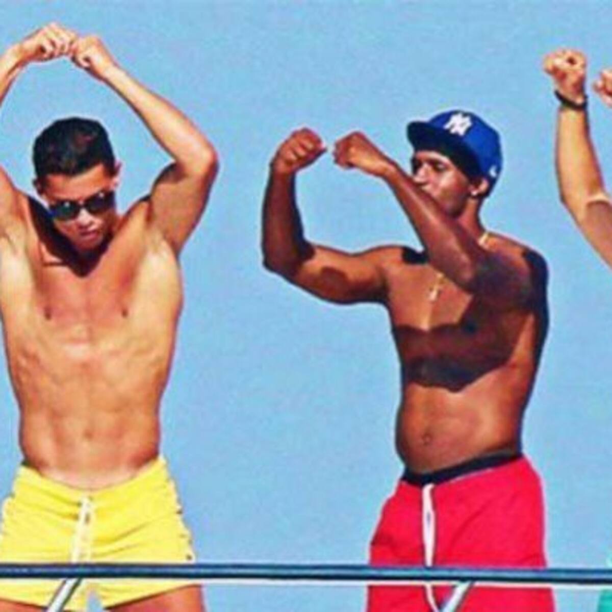 Todo parece indicar que le encanta que sus amigos le unten el bronceador en la espalda.