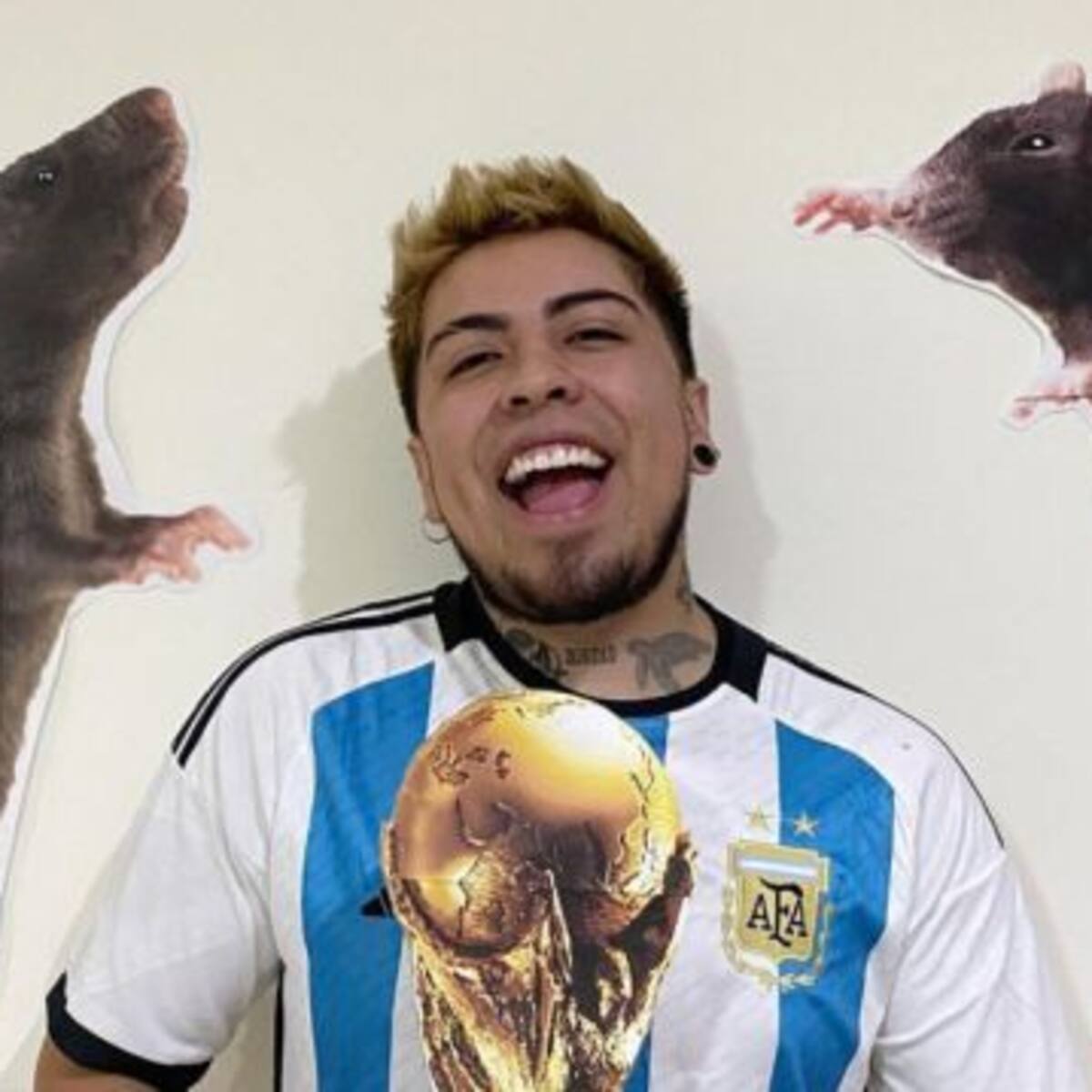 El creador de contenido volvió a ser tendencia en redes sociales tras poner en manos del roedor el ganador del Mundial de Qatar 2022.