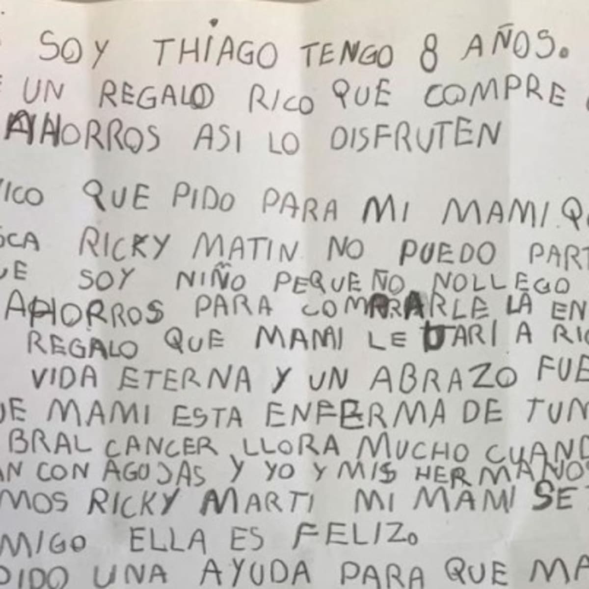 El niño dejó una nota donde explicaba todo.