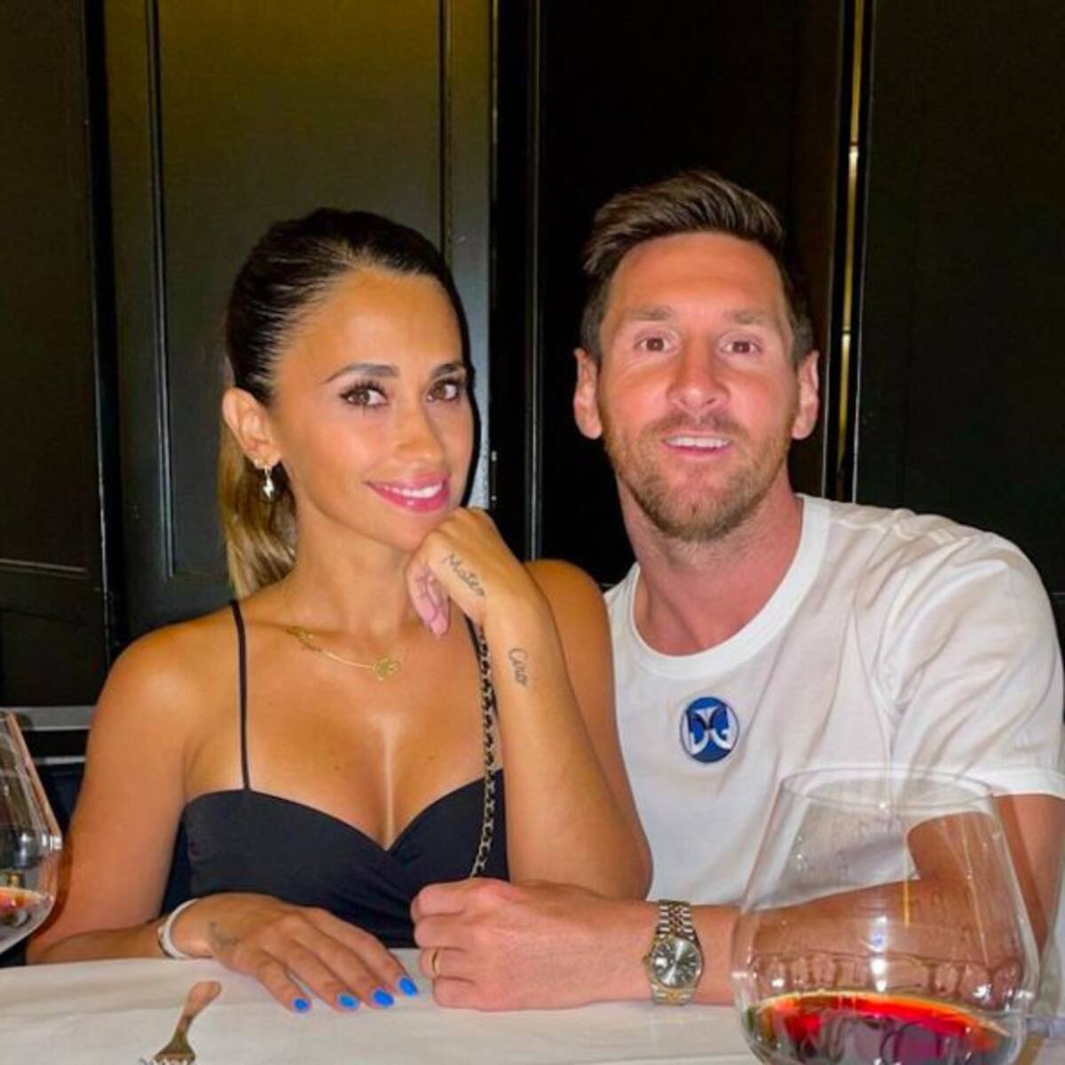 Los cracks del fútbol posaron junto al reconocido cantante y su esposa.