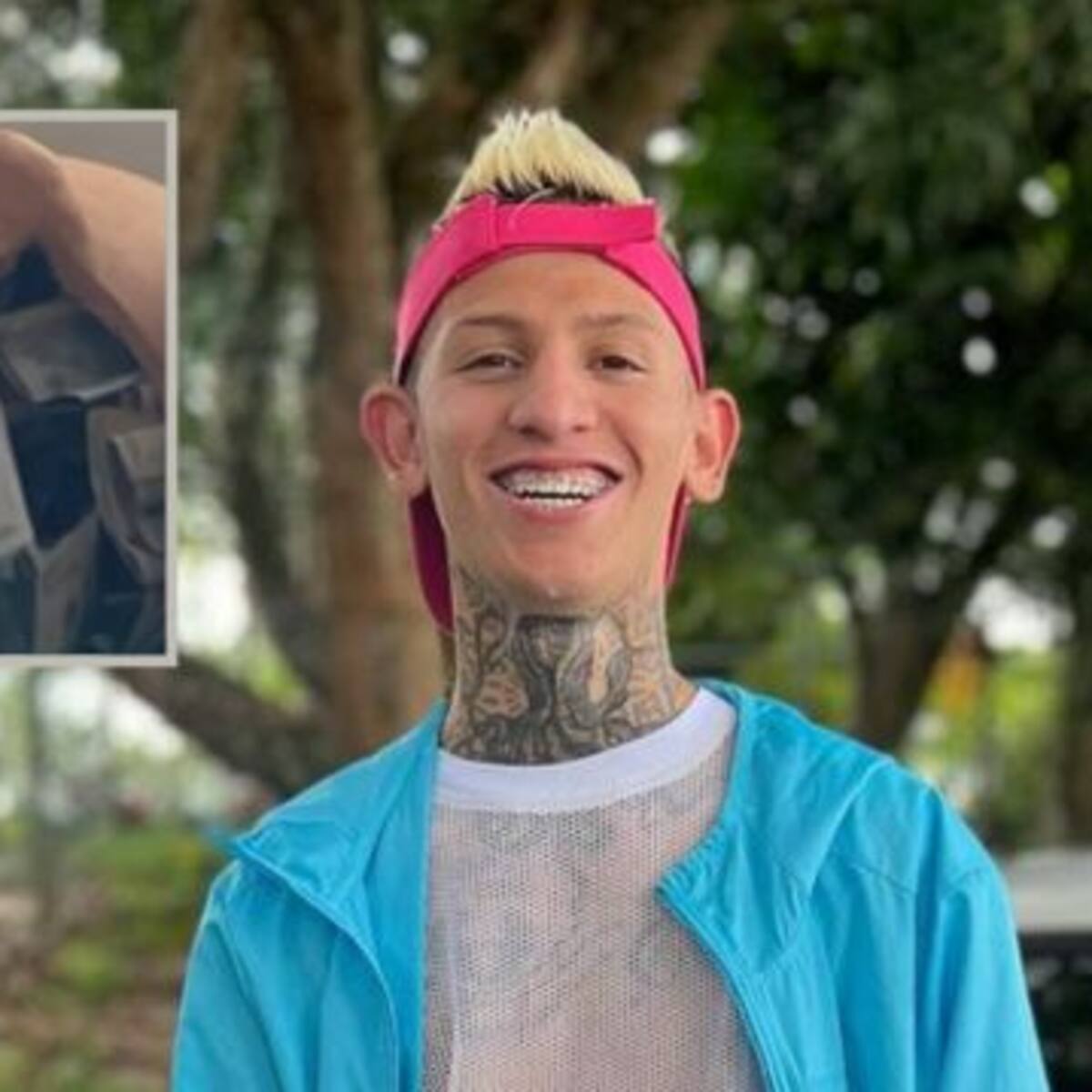 El creador de contenido decidió responderle a quiénes lo juzgaron por haber subido una foto junto al mural del narcotraficante.