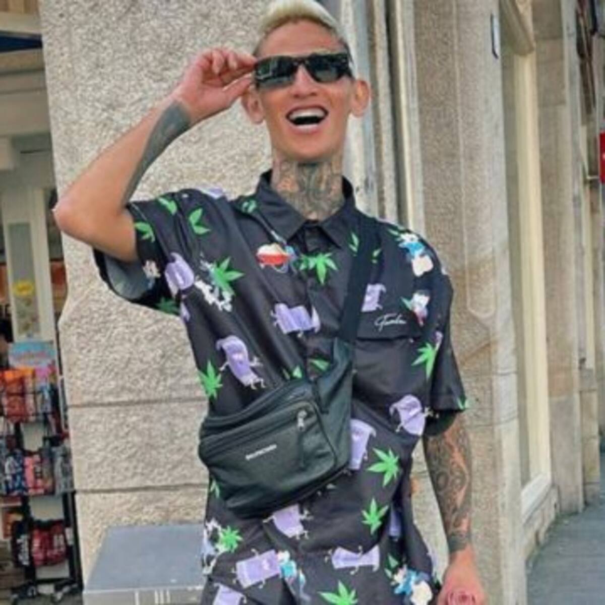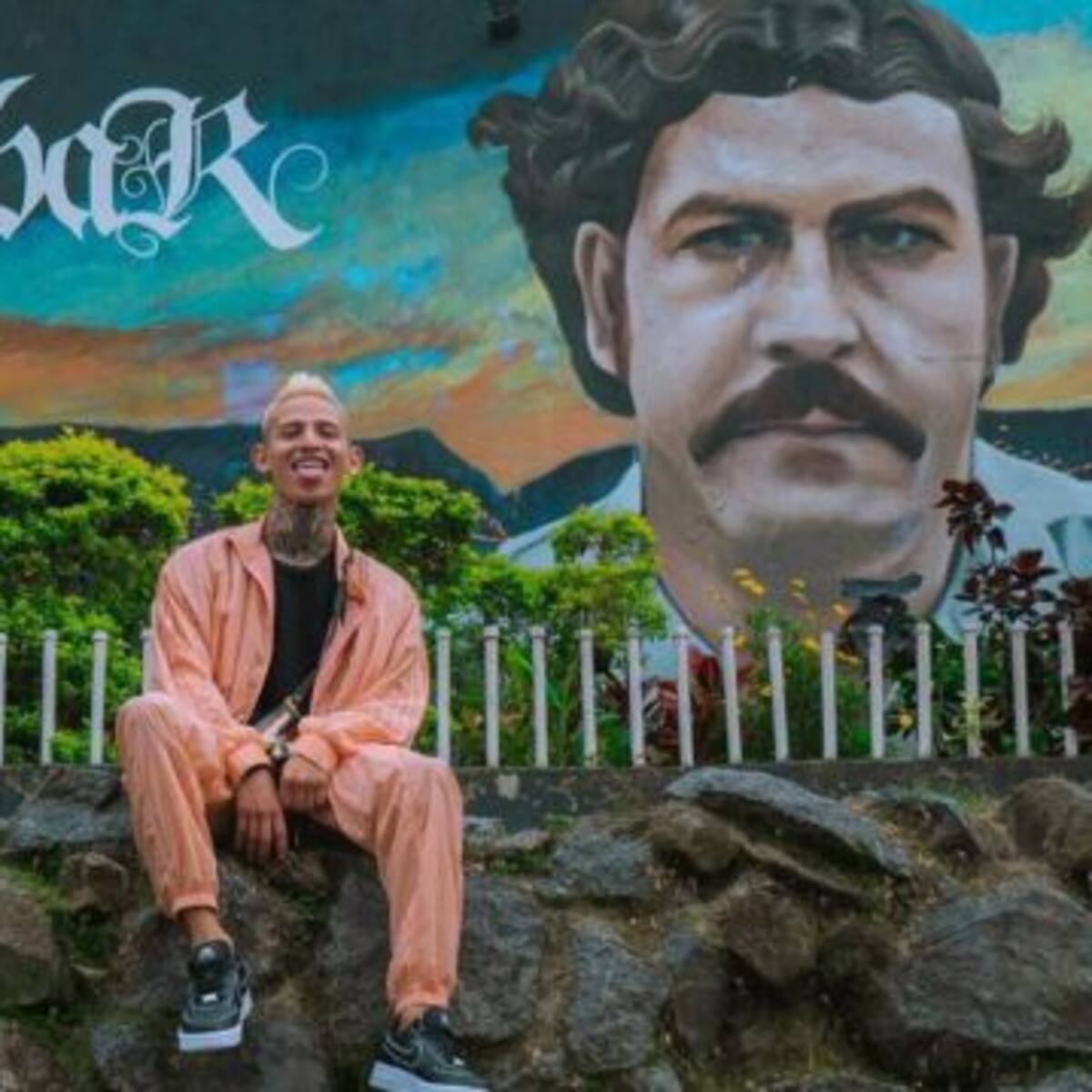 El reconocido creador de contenido compartió una publicación en la que posó, muy feliz, junto al mural del narcotraficante.
